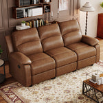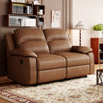 Leather Manual Recliner Sofa with Smooth Recline and Footrest