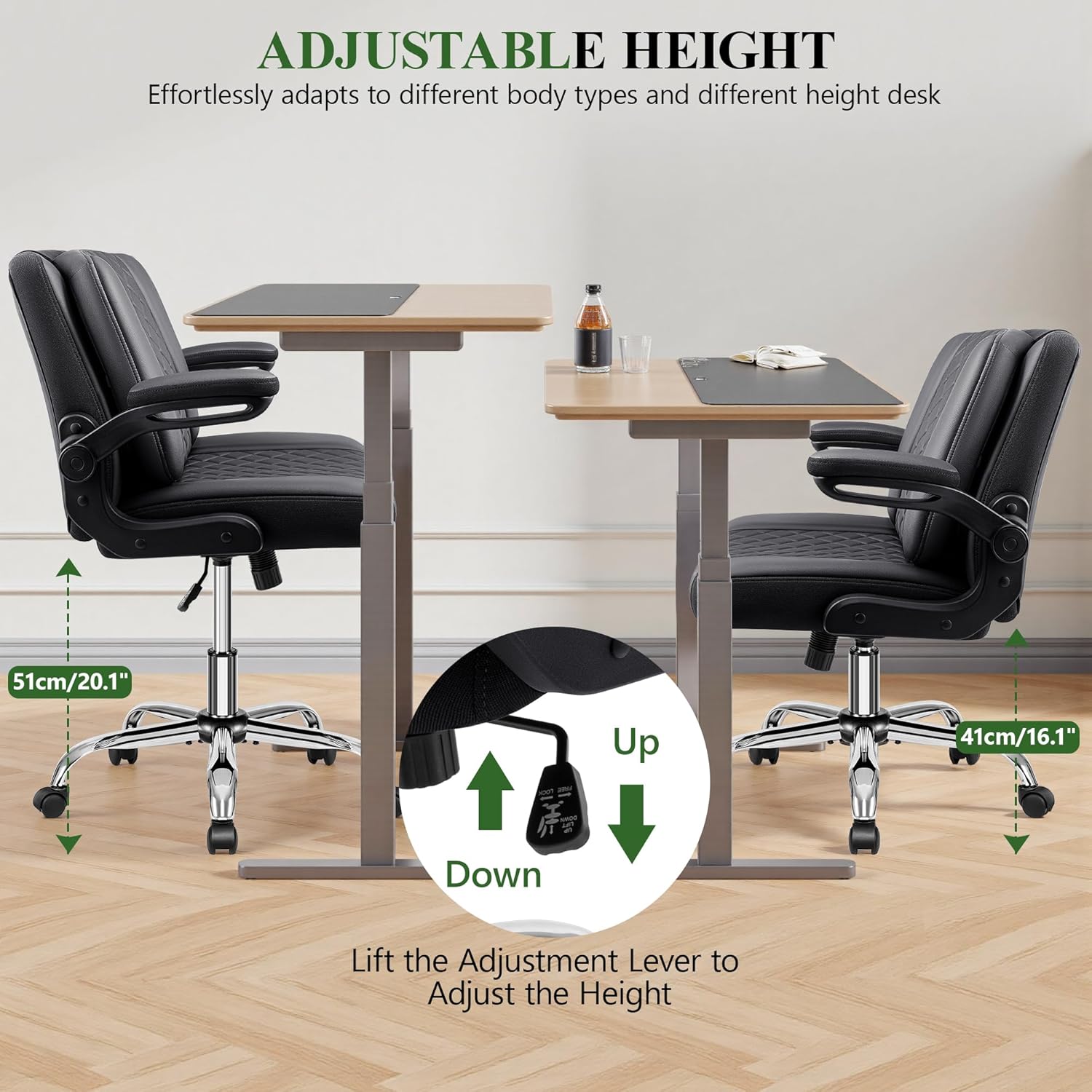 Ergonomic PU Office Chair with Flip-Up Arms & Adjustable Height MP260