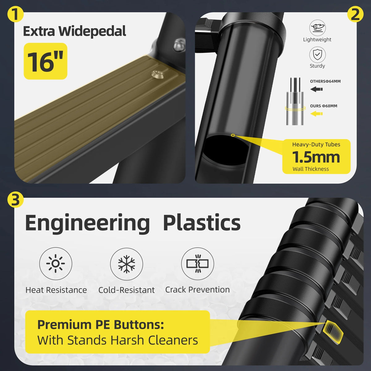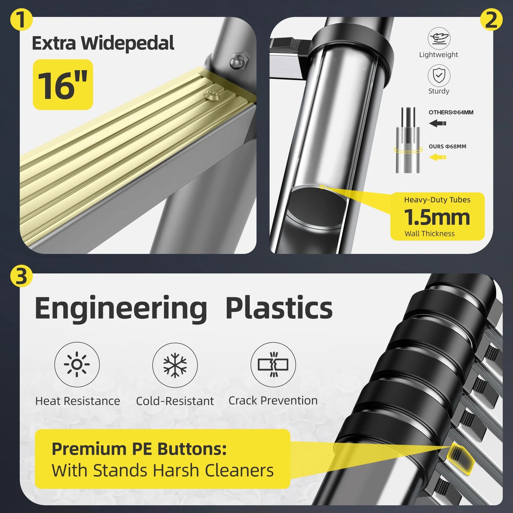 Primy Telescopic Ladder - Safety Meets Smart Design! Made from high-strength aluminum alloy, this ladder is built to support you safely—and go wherever you do. It's compact enough to store anywhere yet extends steady and strong, with each section locking independently to prevent slipping. From changing bulbs at home to tackling outdoor projects, it handles it all. And thanks to a smart anti-pinch design and sturdy carry handle, it’s as safe and portable as it is reliable. Lightweight. Durable. Ready for anything