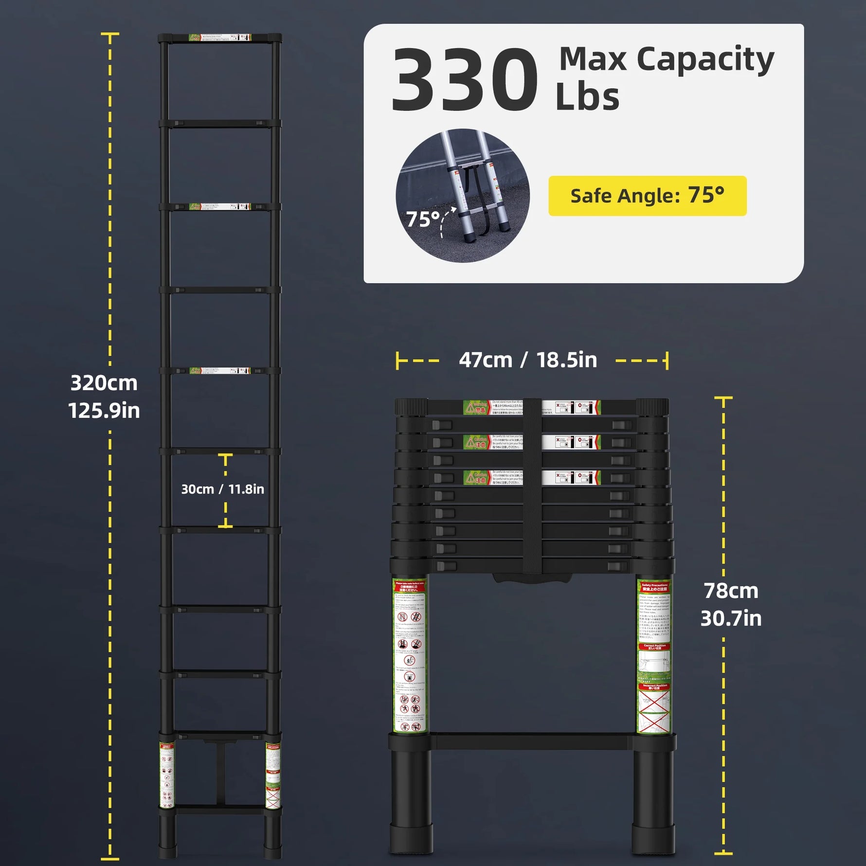 Primy 10.5 FT Telescoping Ladder, Aluminum One-button Retraction Collapsible Extension Ladder, 330 LBS Capacity with Non-slip Feet, Portable Multi-purpose Compact Ladder for Home, RV, Loft