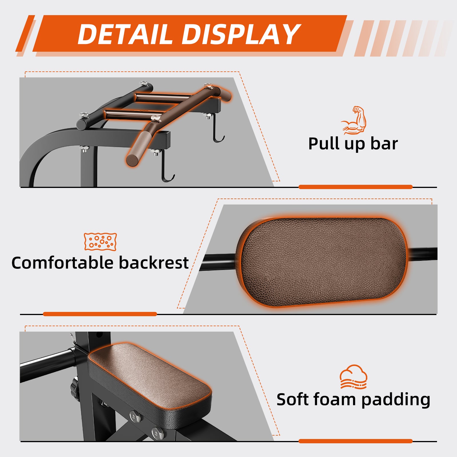 - 👍【Ergonomic & Comfortable Support】Equipped with a stable backrest and cushioned elbow pads, this workout station reduces joint strain and minimizes the risk of injury, allowing for longer, more comfortable training sessions.