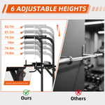 - 👍【Multi-Height Adjustable Design】The pull-up station features 6 adjustable height settings, ranging from 74.8 to 82.68 inches, accommodating users of different heights. With a 350-lb weight capacity, it’s perfect for home, office, or gym use—simply adjust to your preferred level for a customized workout.