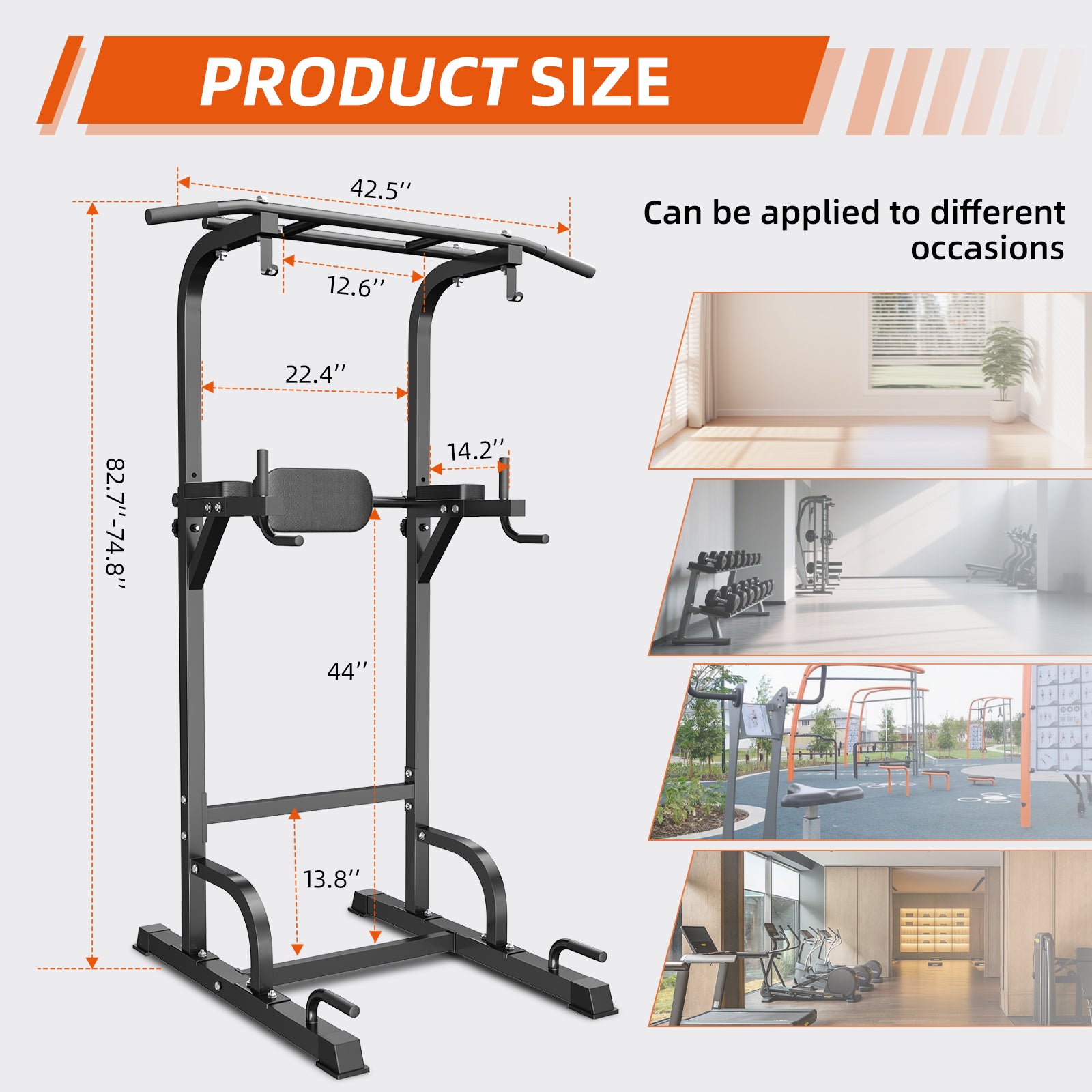 - 👍【Premium Heavy-Duty Construction】Built with a thick steel frame, high-density foam grips, and non-slip nuts, this power tower ensures stability and safety during intense workouts. The reinforced structure prevents loosening, even with vigorous movement.