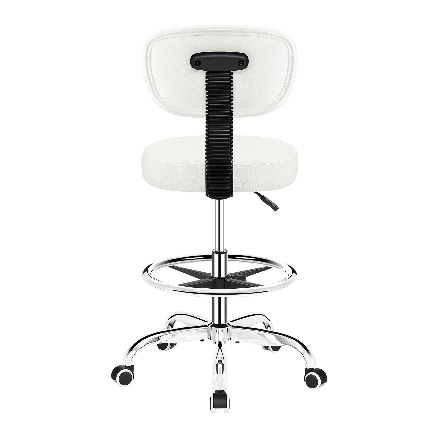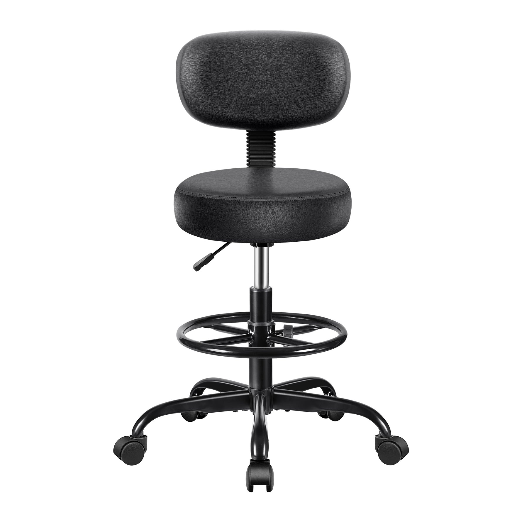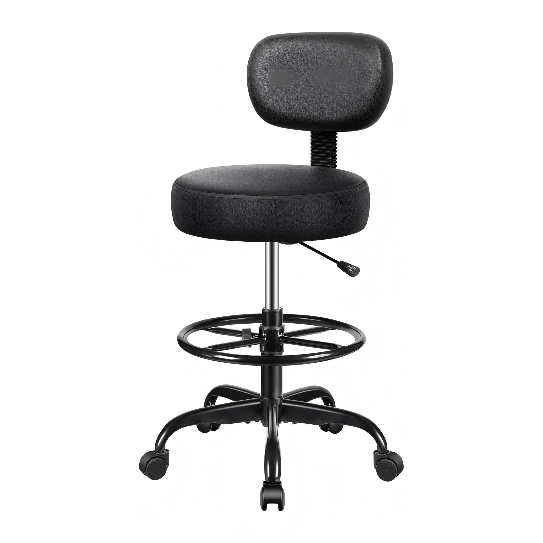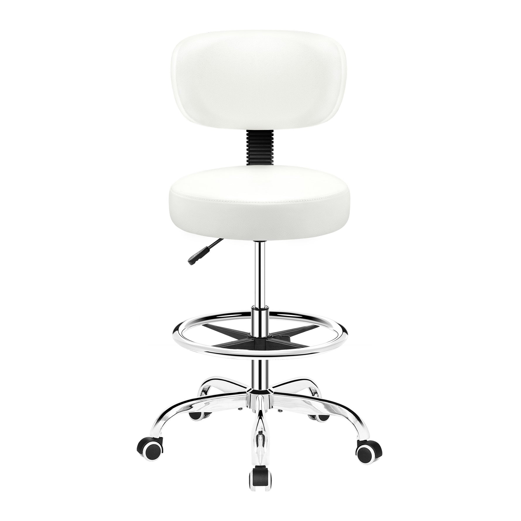Detachable PU leather backrest with curved ergonomic shape and reinforced steel provides support. High-density memory foam and easy-to-clean leather ensure comfort, while smooth, silent rollers allow easy movement.