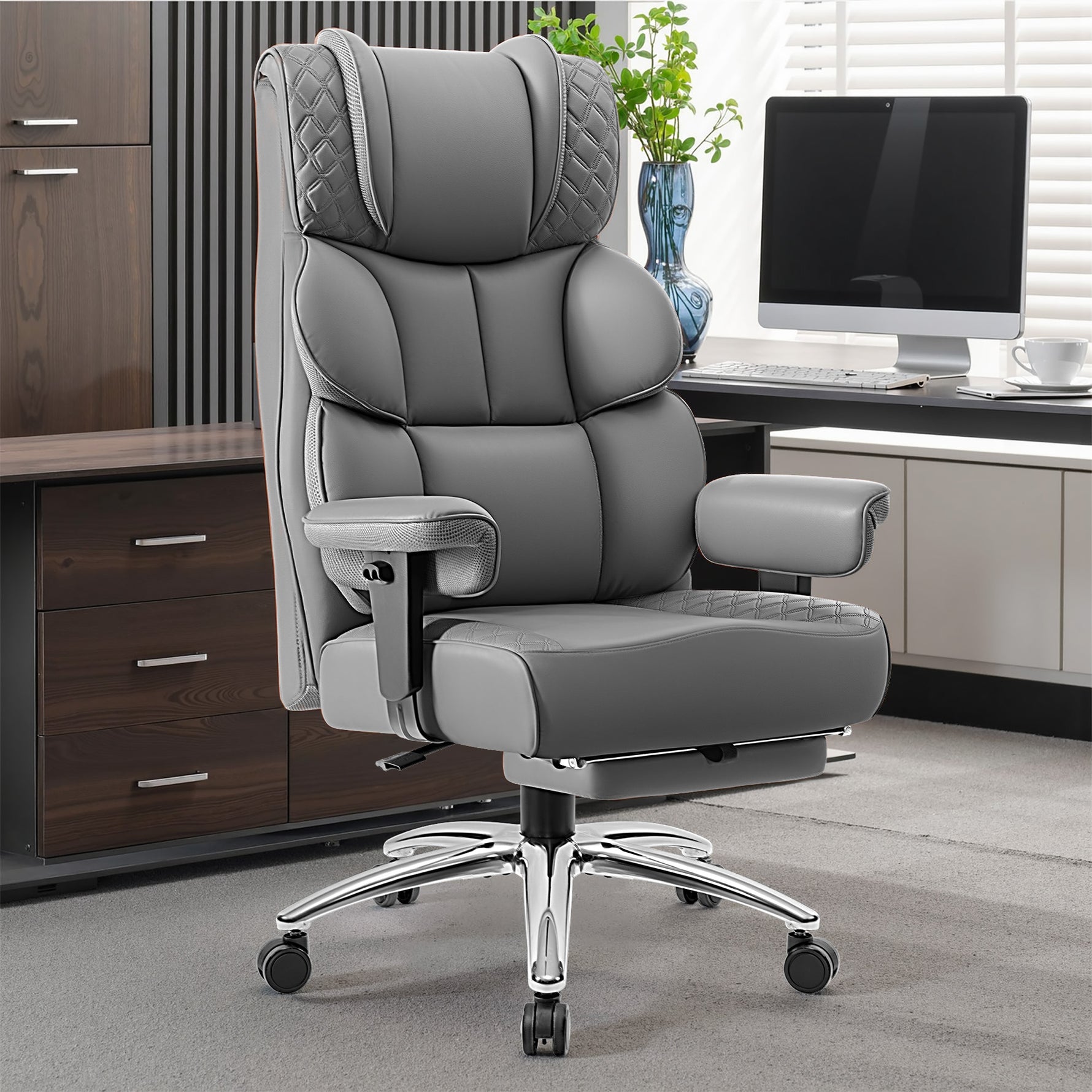 Enjoy all-day comfort with our upgraded ergonomic design. The 5.5-inch extra-thick, wide seat cushion and double-layer backrest provide superior support, perfectly fitting your spine to relieve pressure and keep you comfortable even during long working hours.