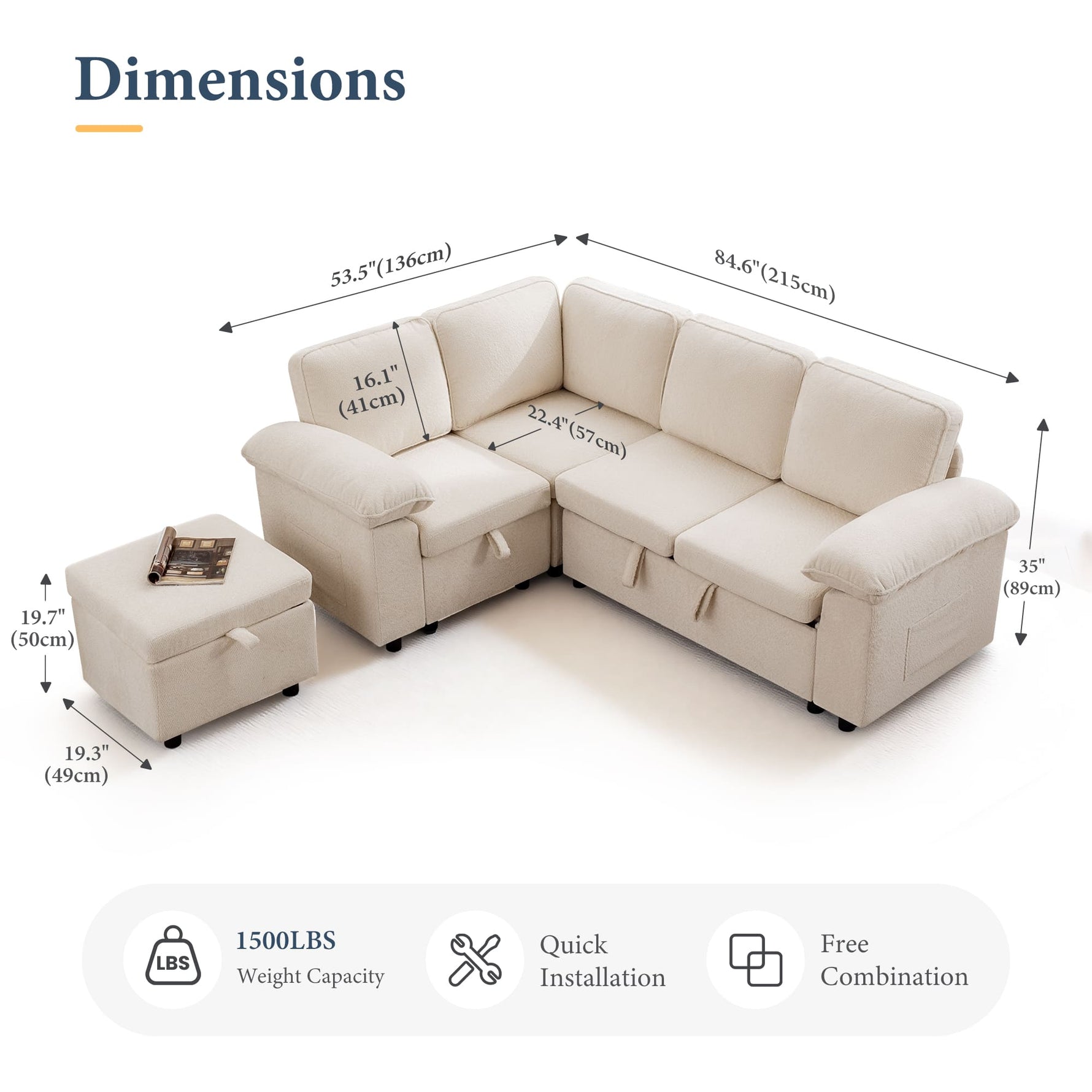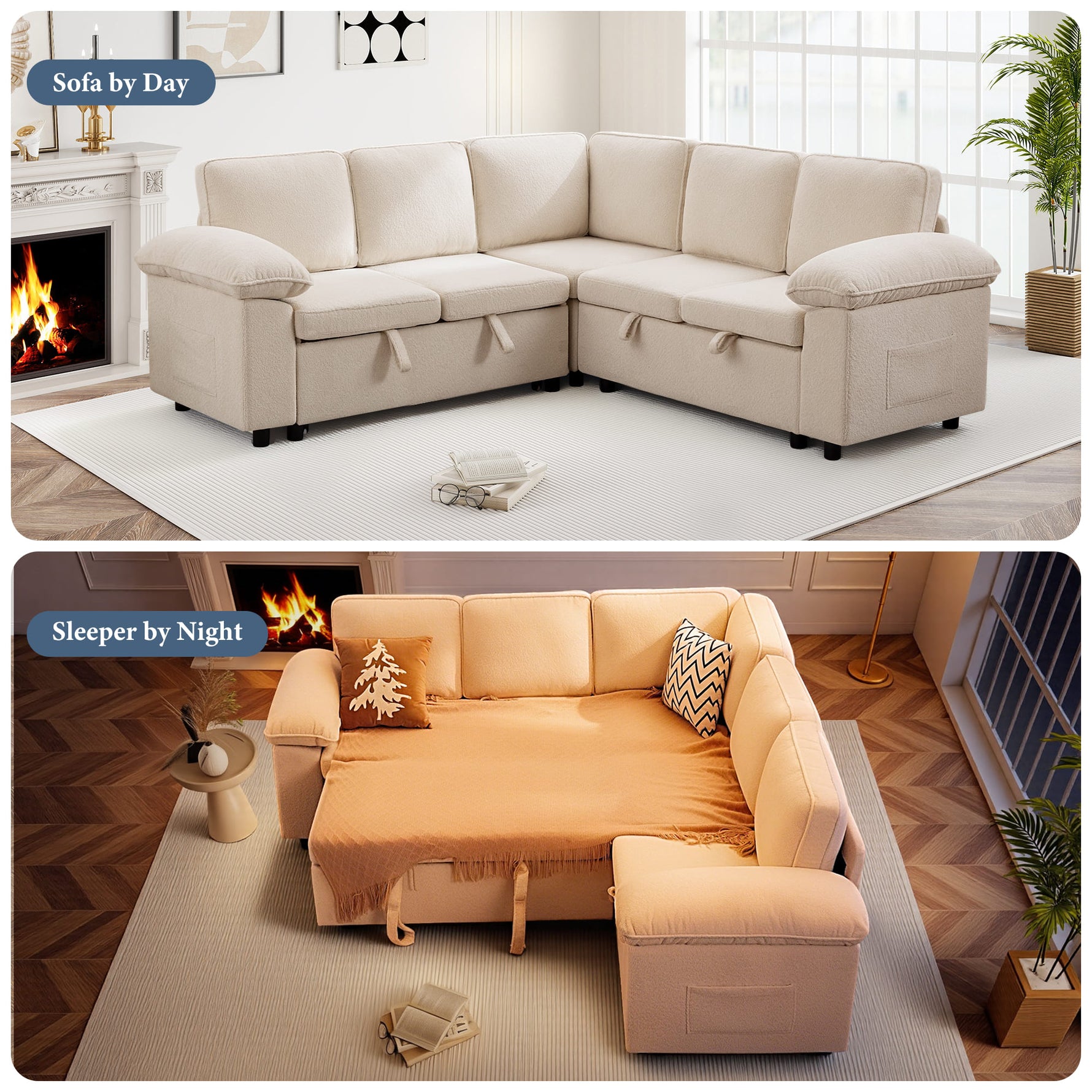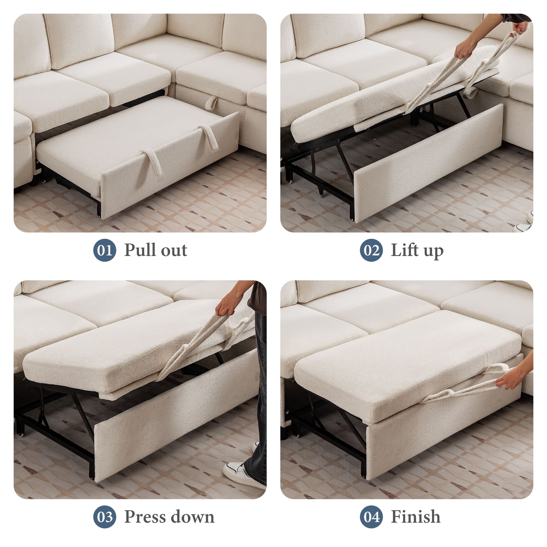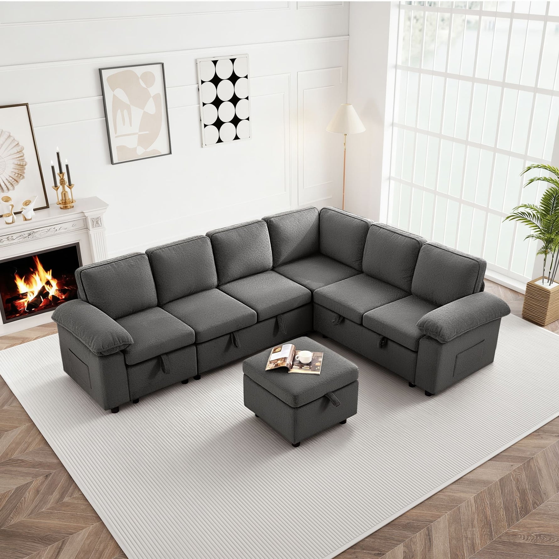 7-Seater Modular Sectional Sofa Couch with Pull-Out Sleeper and Storage