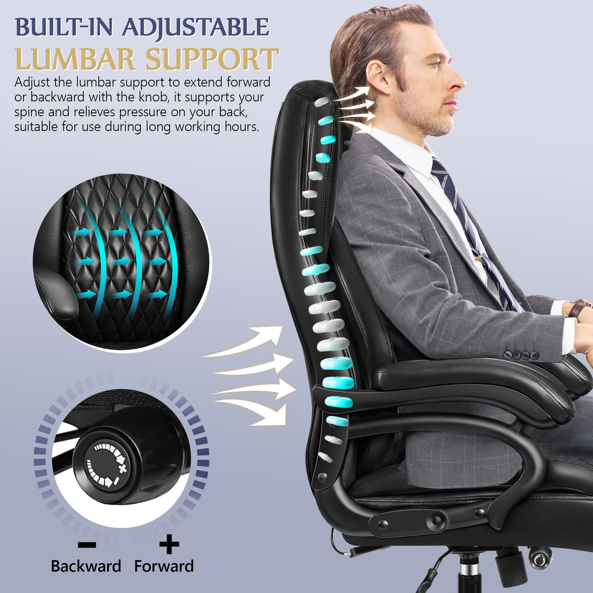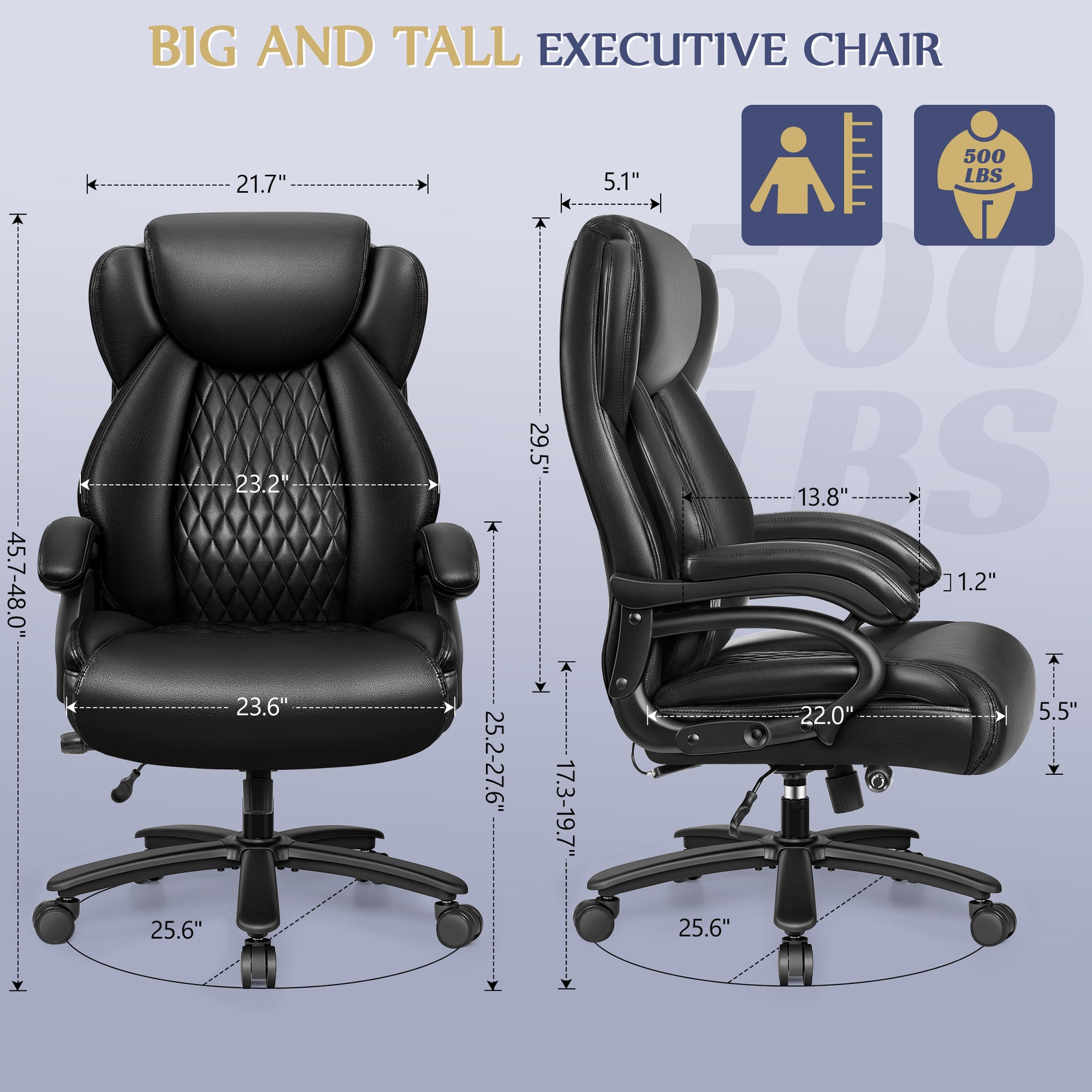 500lbs Big and Tall Office Chair, Heavy Duty Executive Desk Chair with Adjustable Lumbar Support and Extra Wide Seat, Comfy Padded Cushion, Ergonomic PU Leather Home Computer Chair
