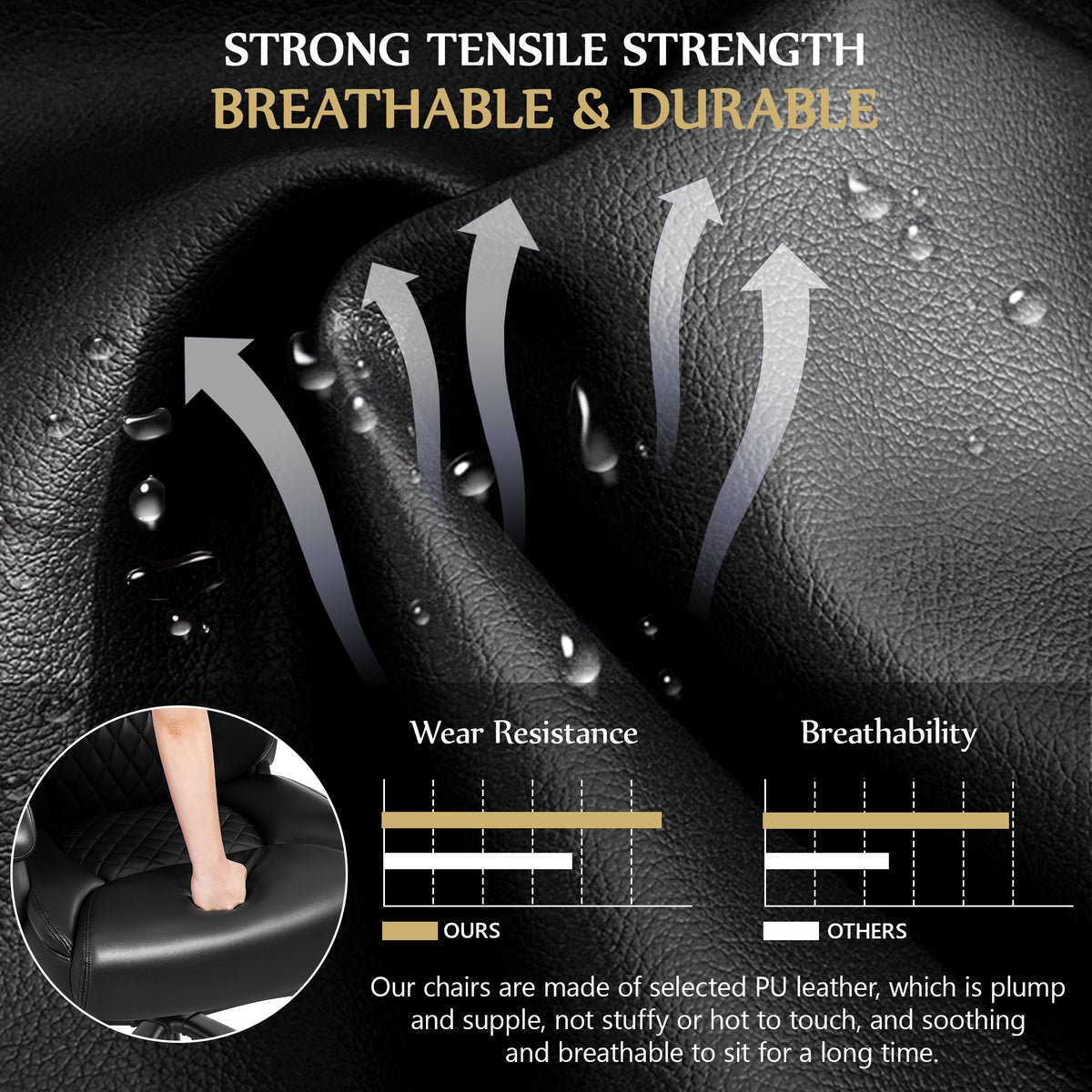 • Breathable, Durable PU LeatherMade from premium diamond-patterned PU leather that promotes airflow to keep you cool. Resistant to scratches, stains, and cracking, this easy-clean material is built to last and maintain its look.