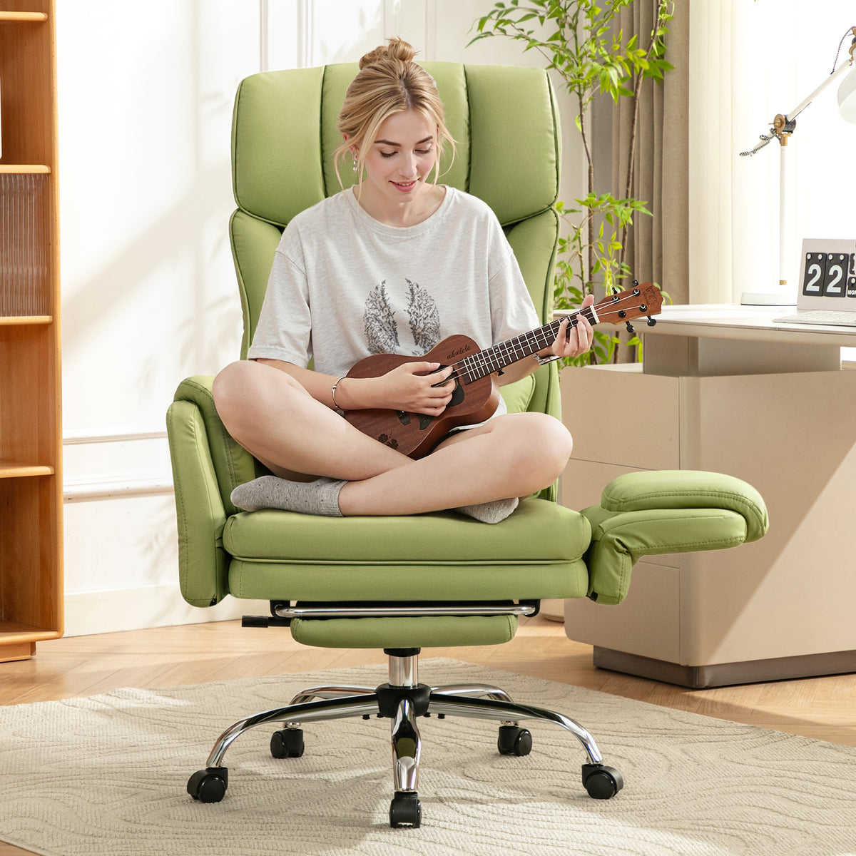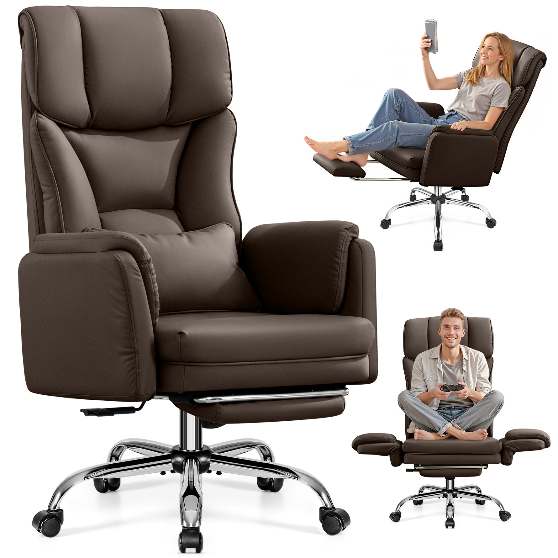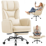 Cross Legged Office Chair with Footrest & Convertible Armrests, 500LBS Capacity Home Desk Chair, Ergonomic Recliner with Lumbar Pillow, Criss Cross Design, Big and Tall Executive Chair
