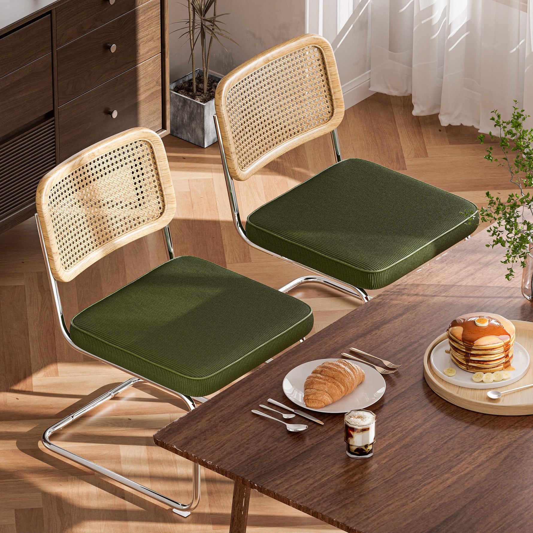 Elevate Your Home with Our Versatile Upholstered Dining Chair Set! Blend vintage charm and modern elegance with our corduroy upholstered kitchen chair. Perfect for any room, it enhances your space with style and comfort.