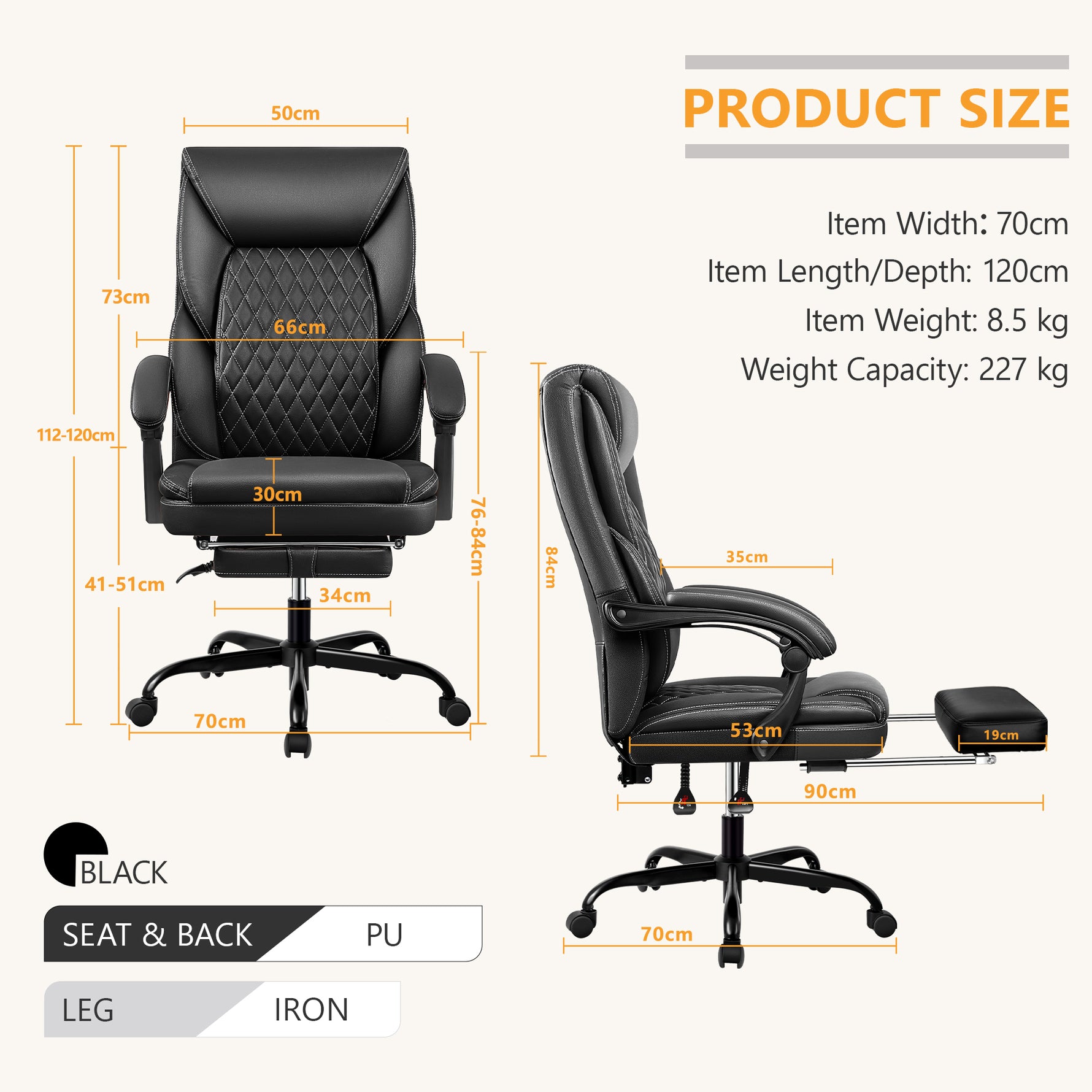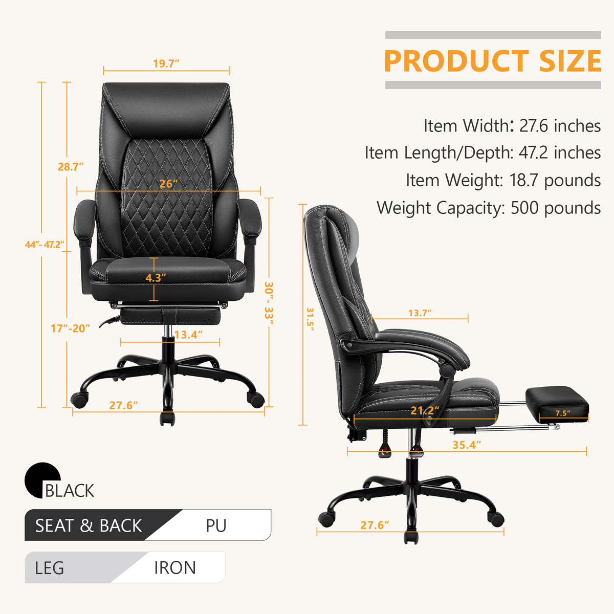 【Customizable Comfort & Space-Saving Design】: Adjust your seat height from 44" to 47" and lock the backrest at any angle up to 135°. The retractable footrest enables smooth transition between work and relaxation while saving valuable space.