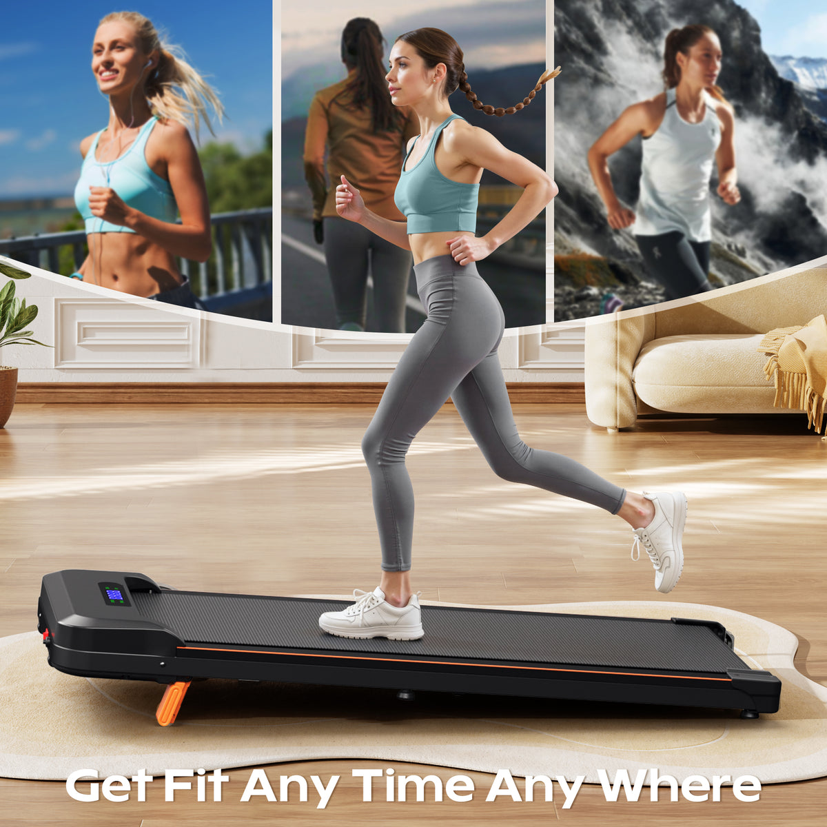 • Compact Design: At just 4.5 inches thick and weighing 40.8 pounds, this portable treadmill features built-in transport wheels for easy storage under furniture, ideal for small spaces.