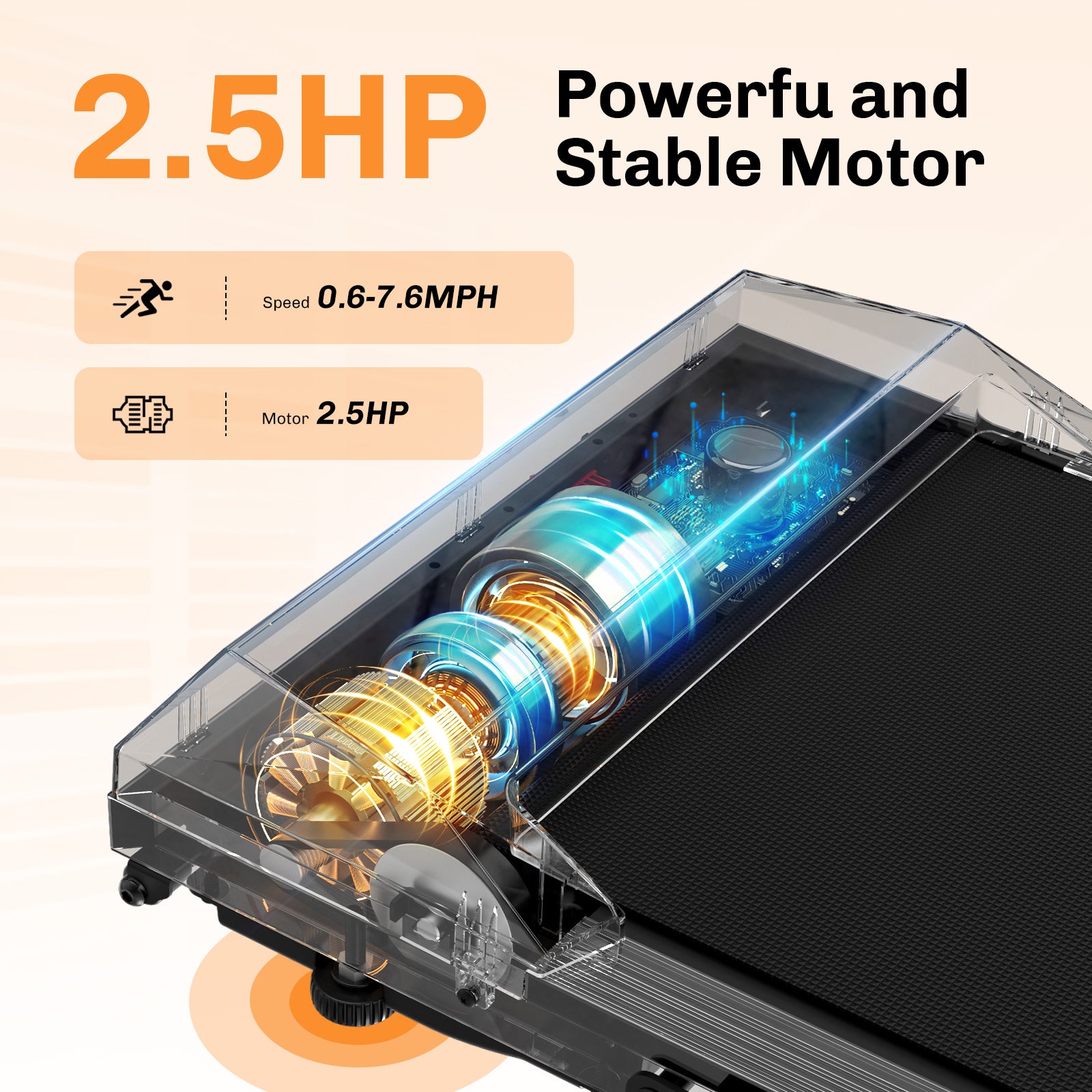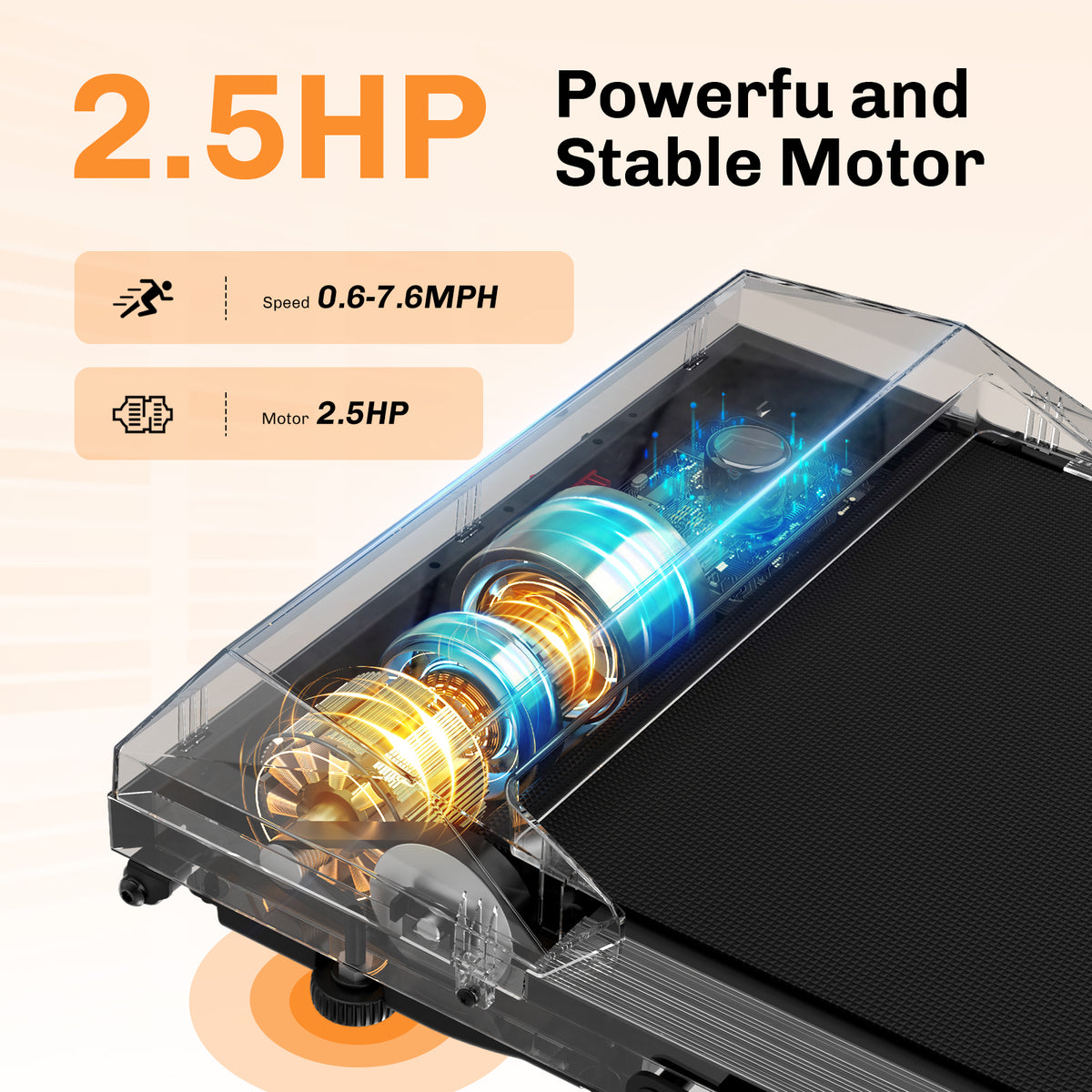 Powerful Motor: Equipped with a robust 2.5HP motor, supporting users up to 265 lbs and reaching speeds of 7.6 MPH for walking, jogging, or running with quiet operation.